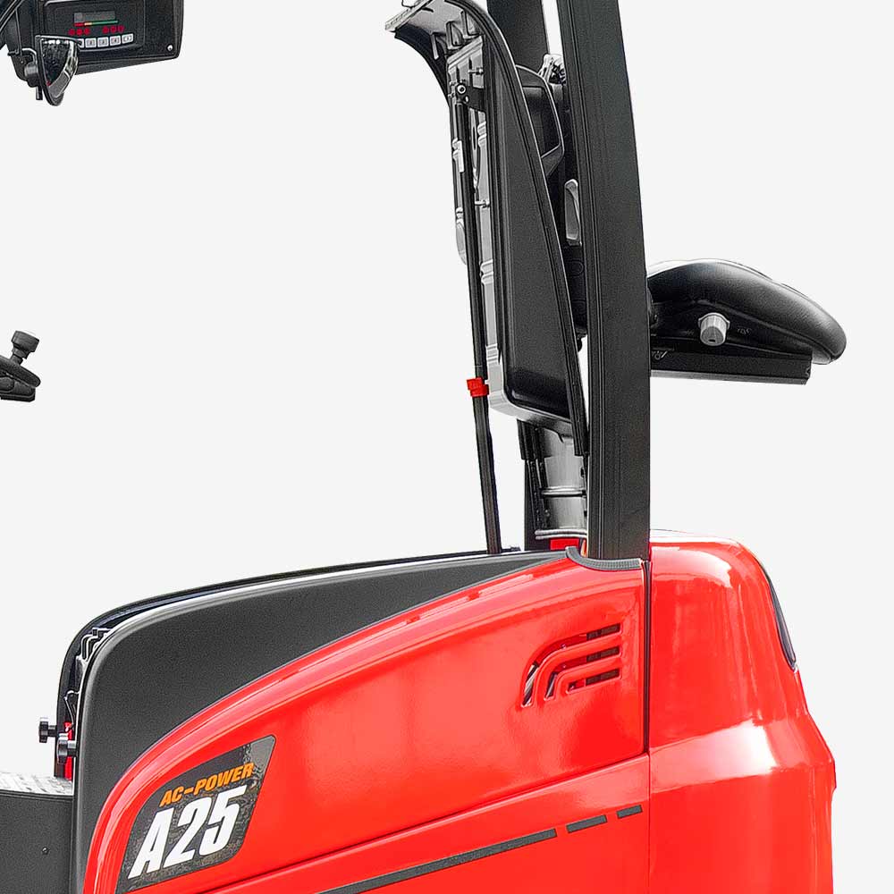 1000~3,500kg Load Capacity 0~6500mm Lift Height Lead Acid Battery Drive Types FEATURES StabilityAdvanced parallel layout of drive motor and lower located battery up to chassis bottom provide good stability to the truck. ComfortableEasy to see dashboard is relocated to overhead, no restriction of the operator’s visibility. The operator can monitor the truck operation at a glance. AdvancedRegenerative braking is more energy saving and efficiency during truck’s deceleration, direction changing, and driving on downwards slope. Service AbilityOverloaded protection system is applied for electronics and hydraulics. Gallery Download Brochure For further information, please do not hesitate to contact us Send your queries
